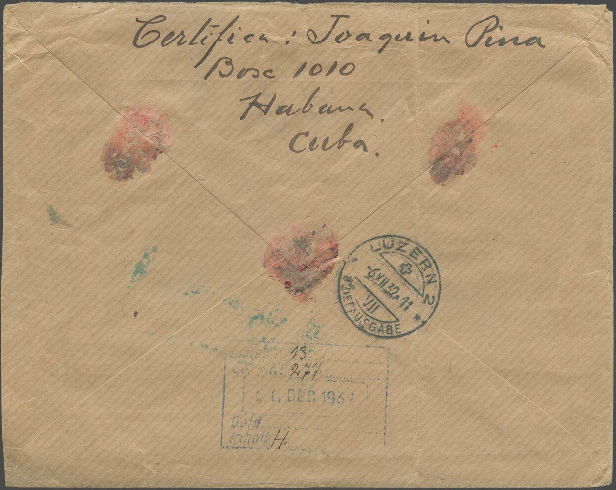 Einschreiben abgeschickt am 7. Dezember 1938, von Colombo, Ceylon (heute Sri Lanka), nach Zürich, Schweiz. Angekommen am 22. Dezember 1938.