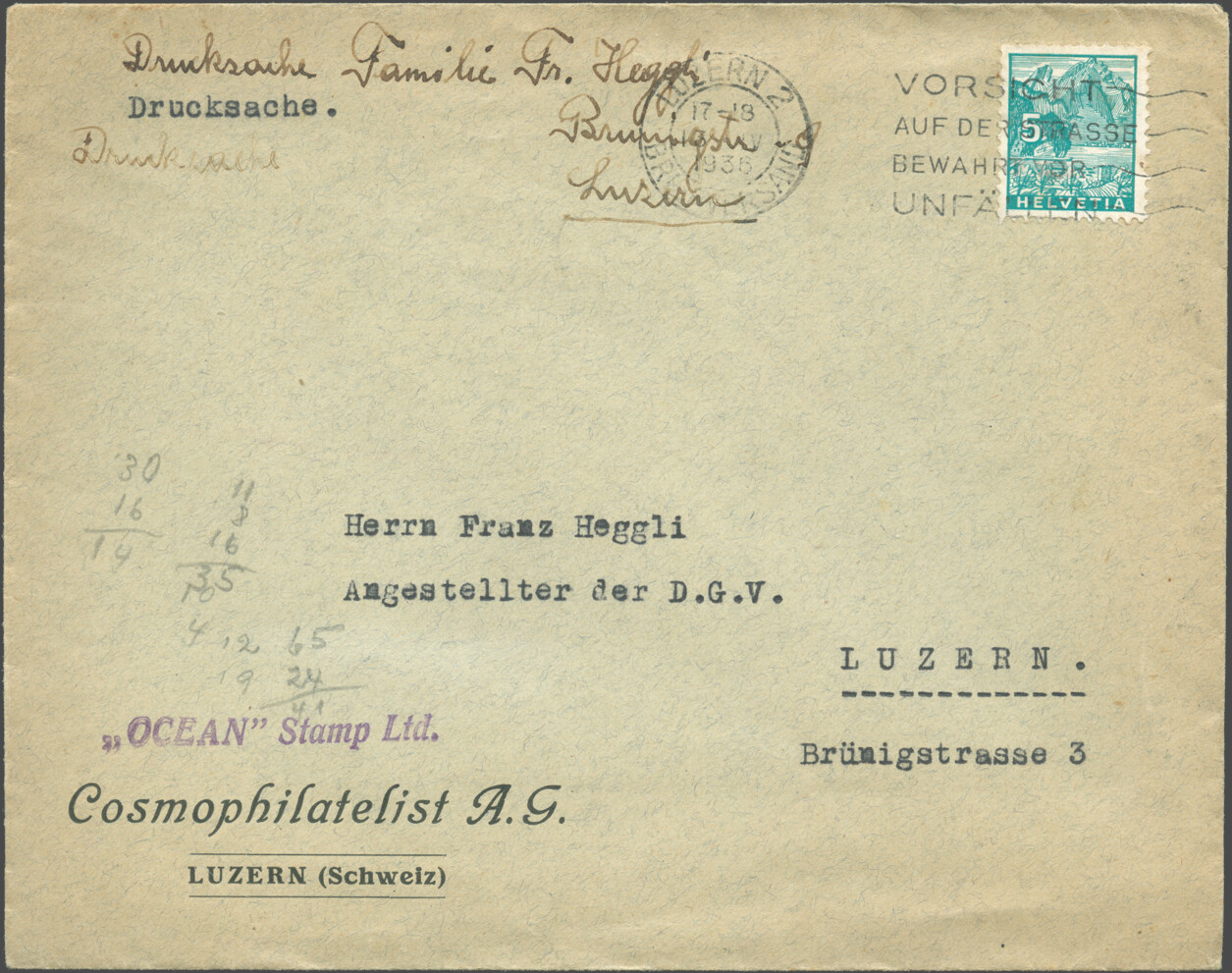 Printed matter sent on April 13, 1936, within Lucerne, Switzerland.
