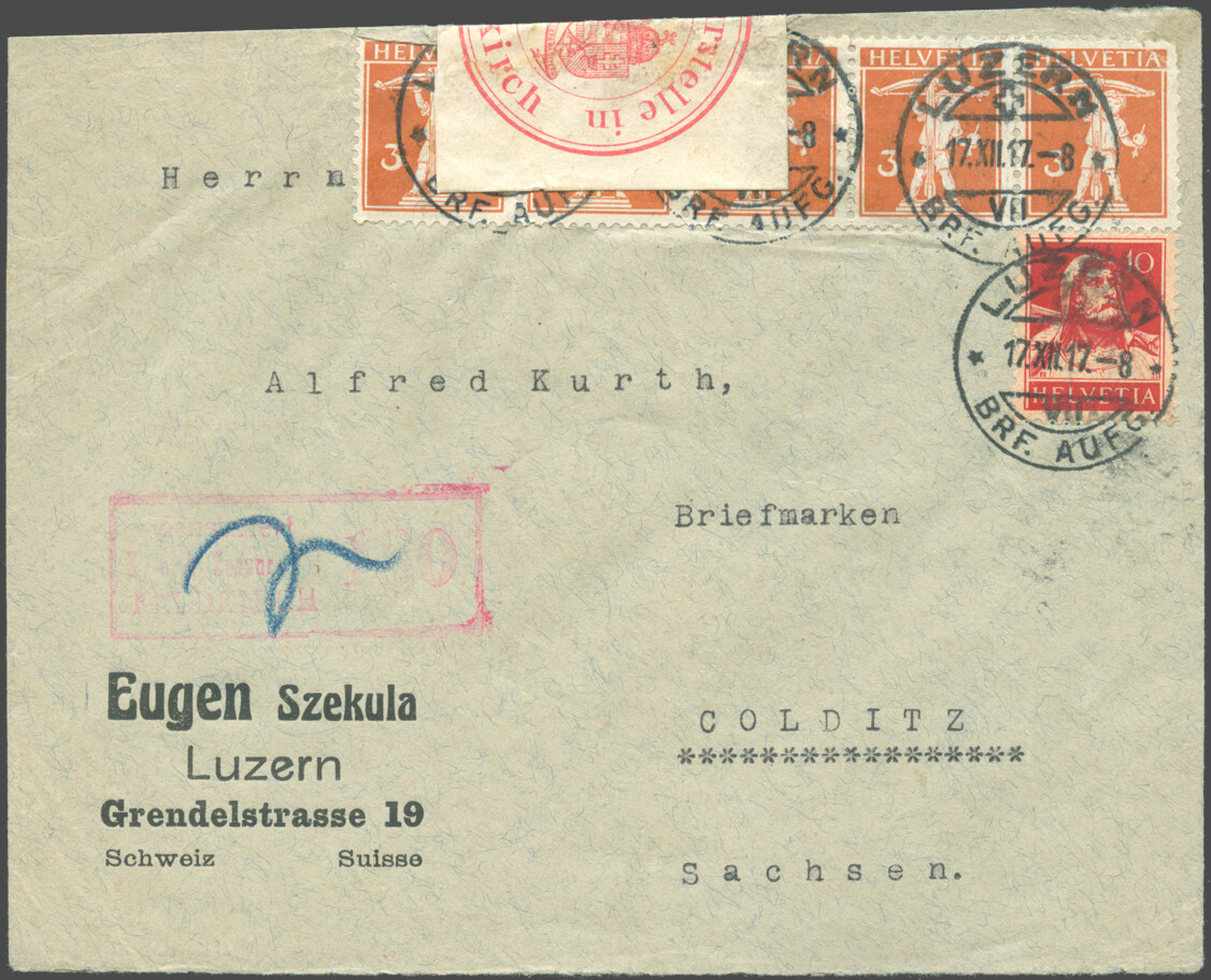 Sent on December 17, 1917, from Lucerne, Switzerland, to Colditz, Germany.