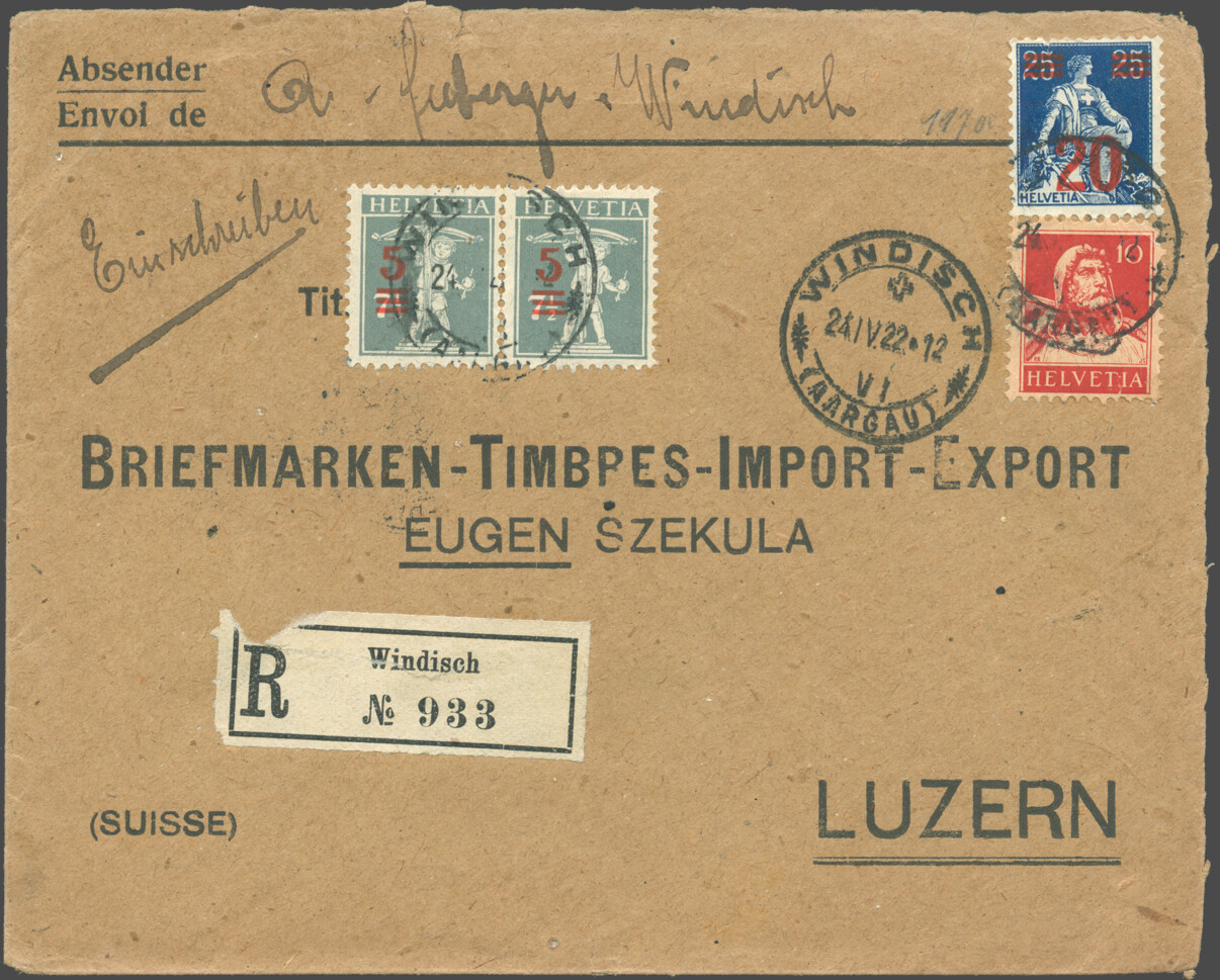 Registered mail sent on April 24, 1922, from Windisch, Switzerland, to Lucerne. Arrived on April 24, 1922.