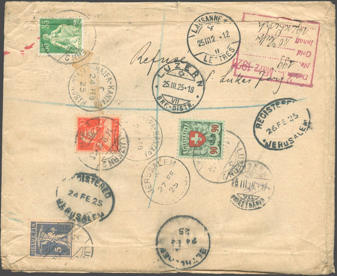 Registered mail sent in August 1920 from Copenhagen, Denmark, to Lucerne, Switzerland. Arrived on August 23, 1920.