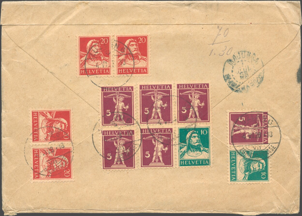 Registered mail sent on December 7, 1938, from Colombo, Ceylon (today Sri Lanka), to Zurich, Switzerland. Arrived on December 22, 1938.