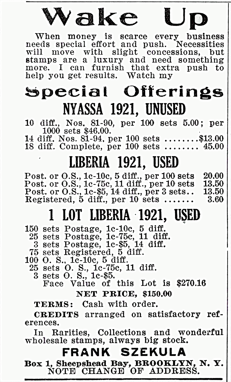 In late 1921, he and Béla joined the membership of New York’s renowned Collectors Club, and in early 1922 Frank already ran his own wholesale stamp business in New York City.