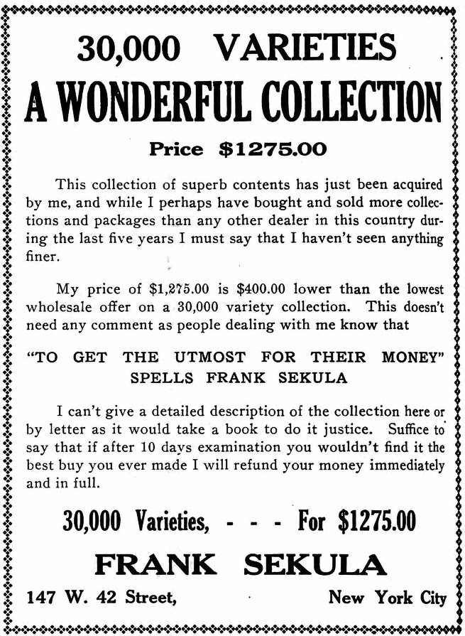 Frasek’s newspaper ads for cheap approvals were everywhere, and Frank Sekula was reportedly the first stamp dealer to also place radio commercials.